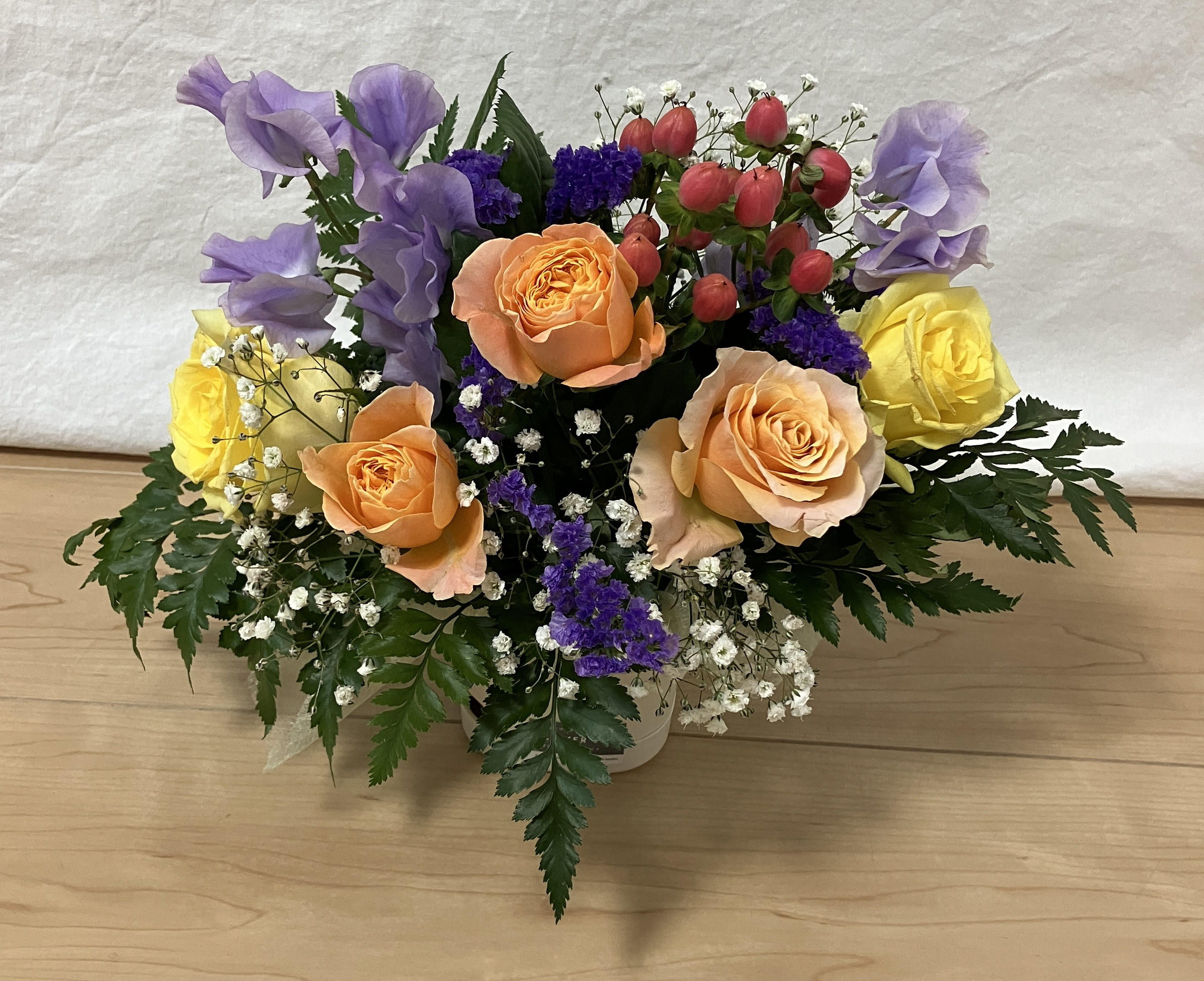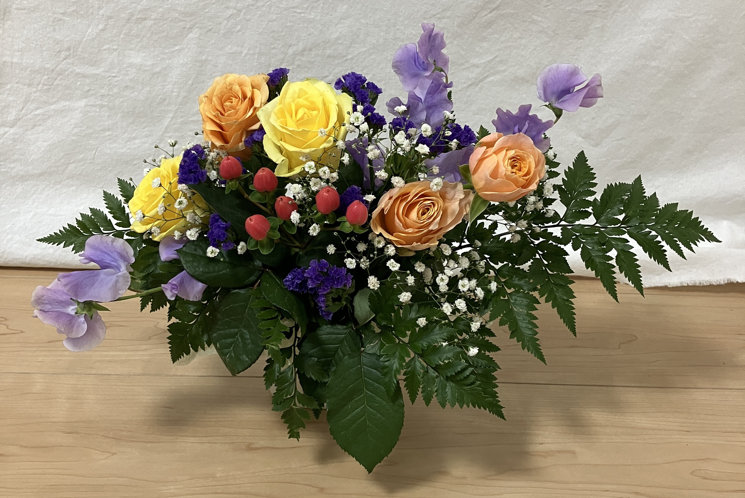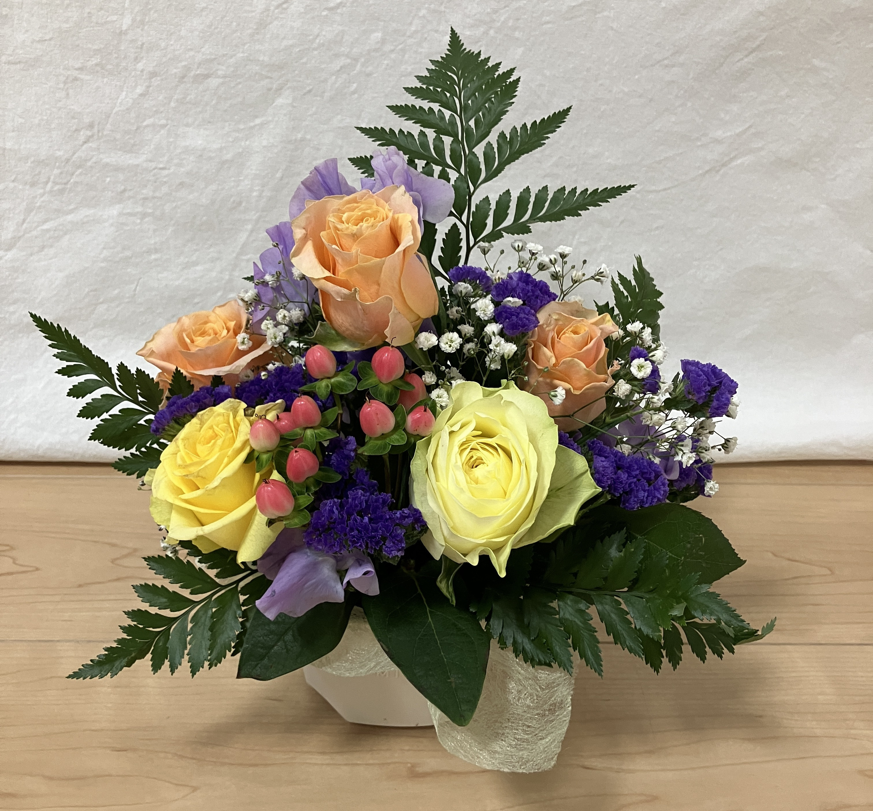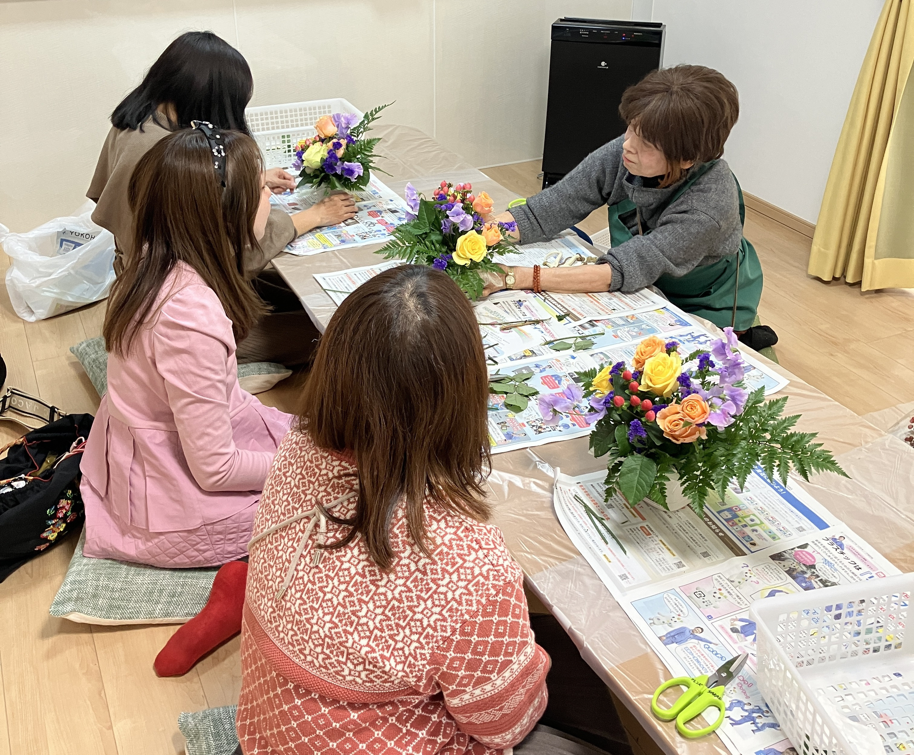 フラワーアレンジメントは初めての方もいらっしゃり、どこにどの花を挿すか迷われながら、作っていらっしゃいました。